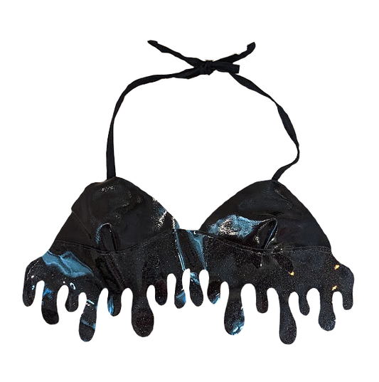 Oil Drip Patent Black Holographic Leather Bralette